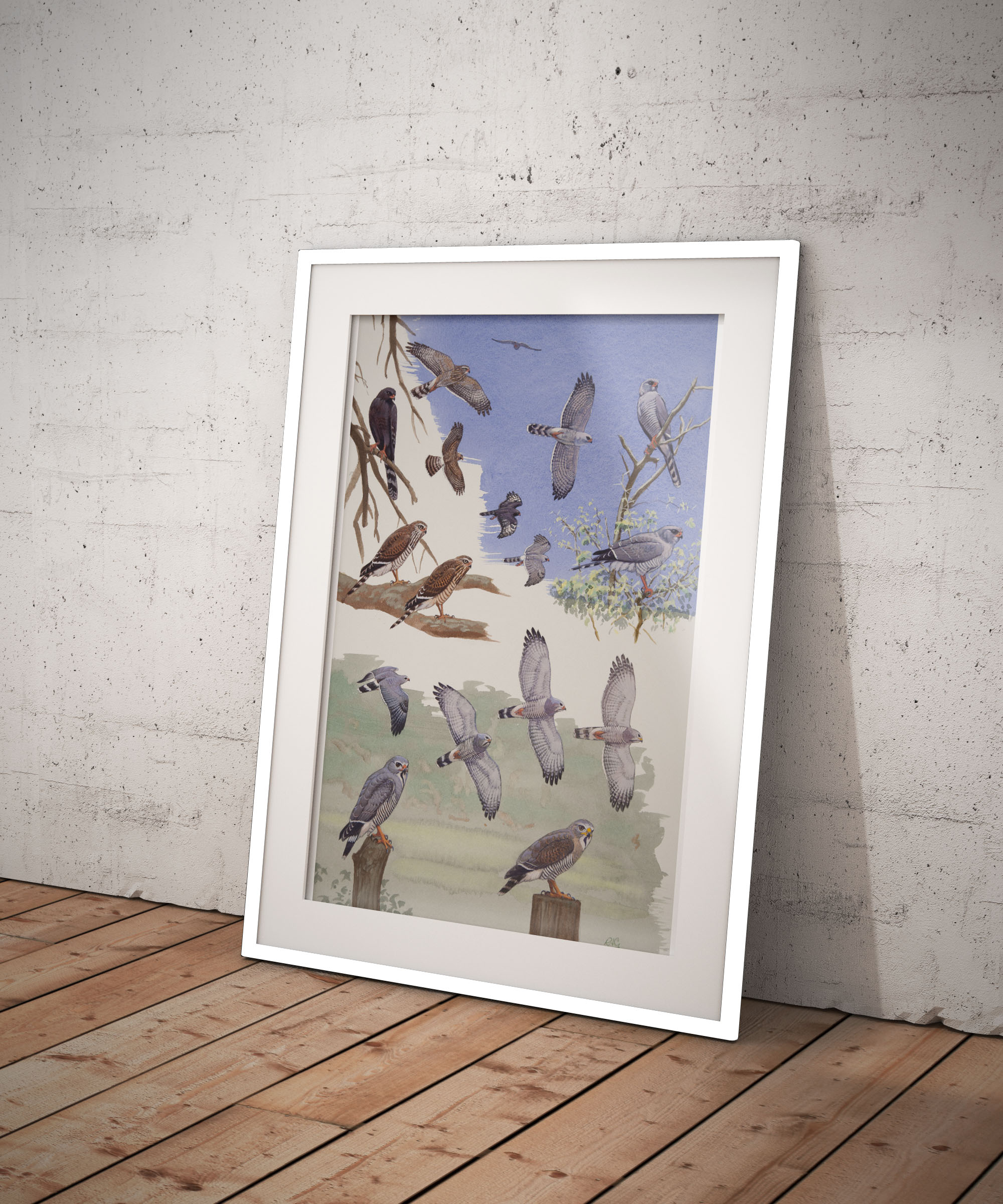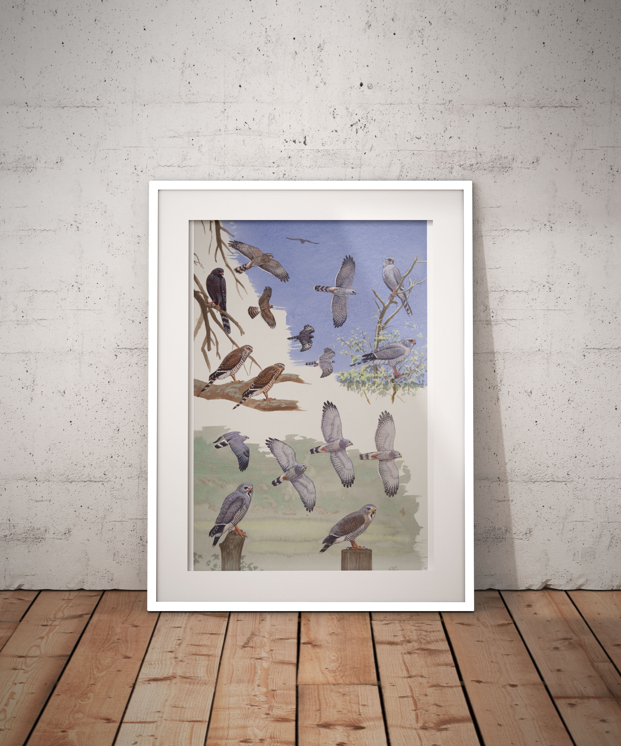 Gabar Goshawk and Lizard Buzzard gouache and water colour plate from African Raptors field guide by William S. Clark & Rob Davies.