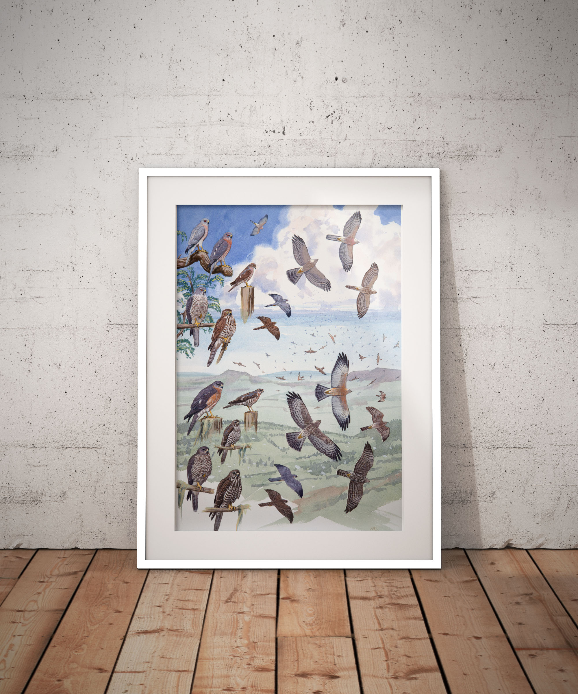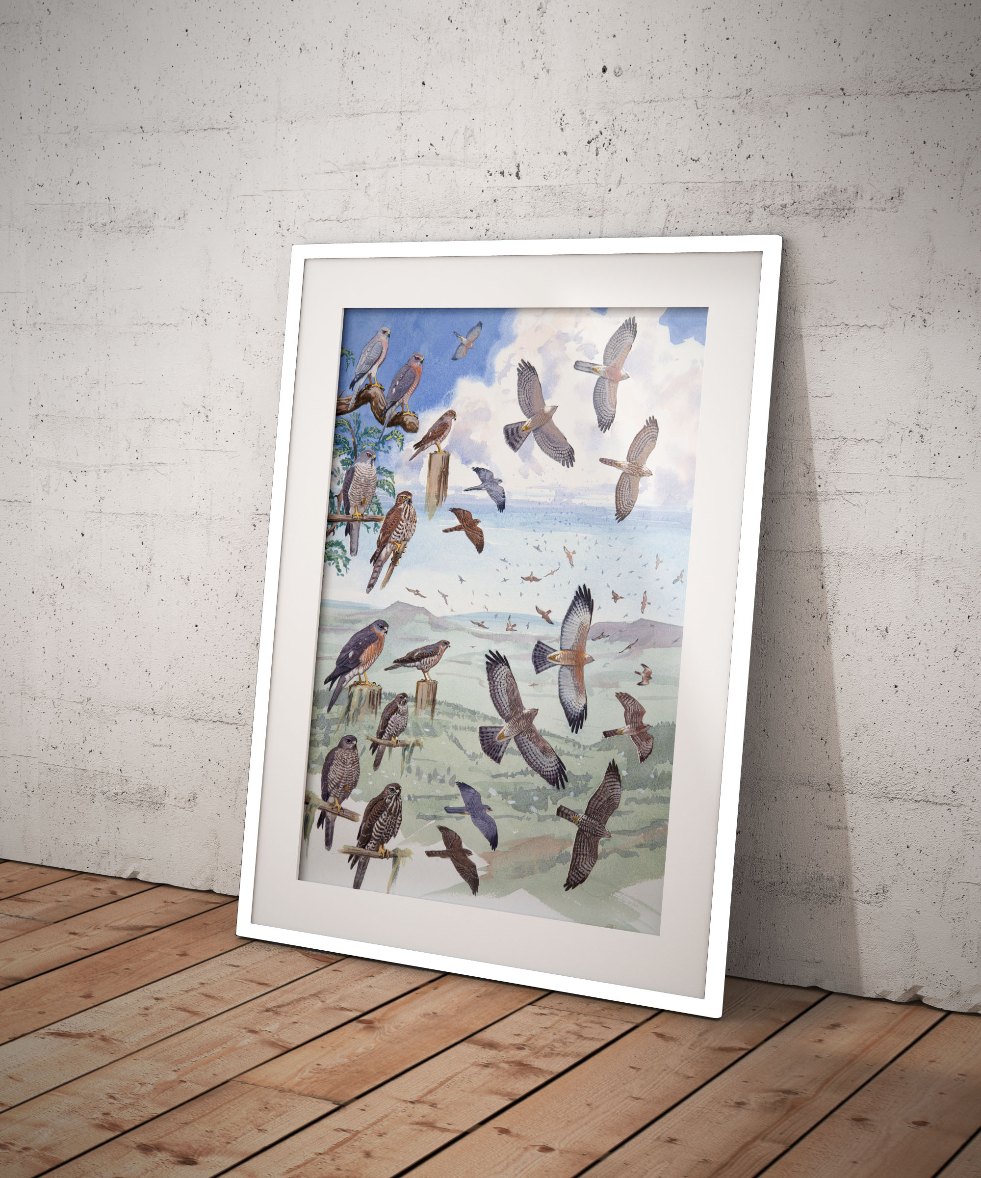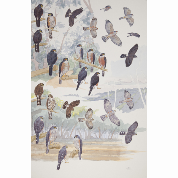 Red-thighed and Little Sparrowhawks gouache and water colour plate from African Raptors field guide by William S. Clark & Rob Davies.